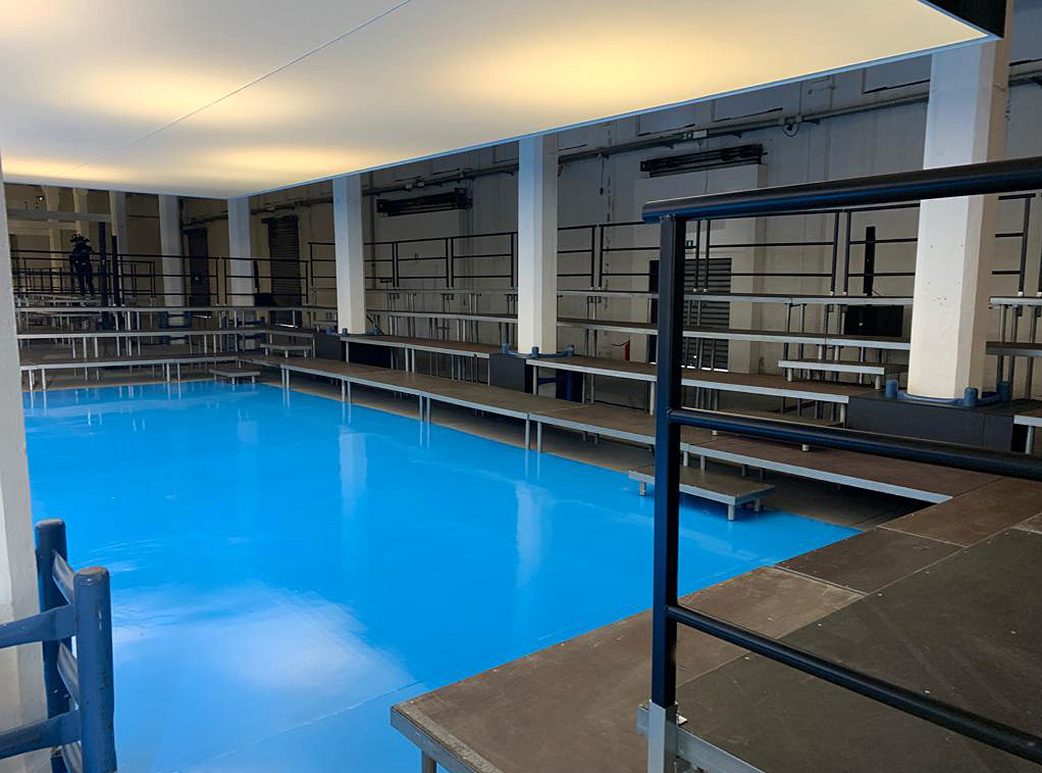 Palchi modulari ad altezza variabile, completi di scale di accesso, parapetti e rampe a pendenza fissa per disabili.